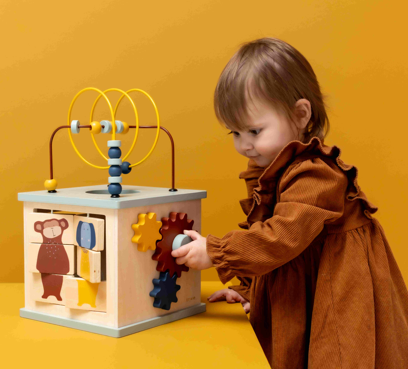 Khối bận rộn Trixie 5in1 là món đồ chơi trí tuệ tuyệt vời cho bé phát triển kỹ năng toàn diện, đa giác quan, học được kỹ năng vận động tinh và nhận thức không gian khi chơi với các màu sắc, con số và hình dạng thông qua những trò chơi đầy vui nhộn và thử thách.